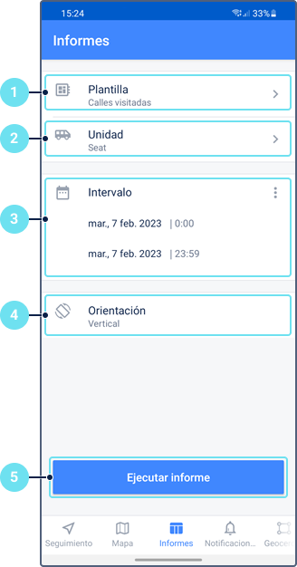 - Ejecutar informes sobre unidades y grupos de unidades, geocercas y grupos de geocercas