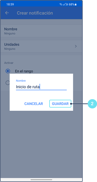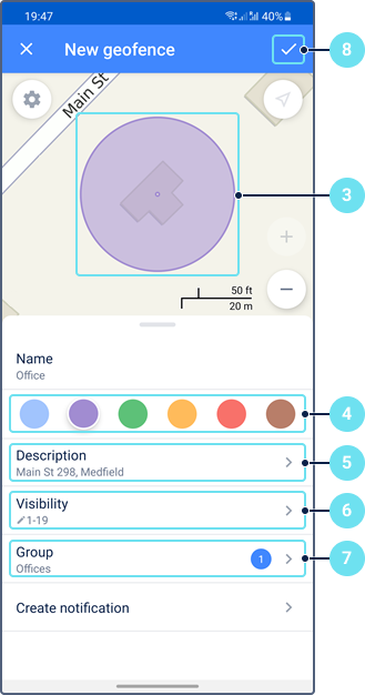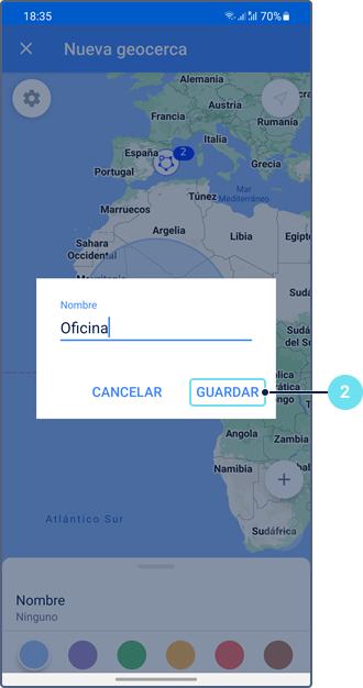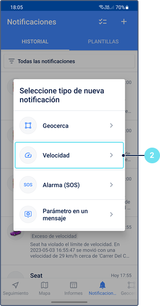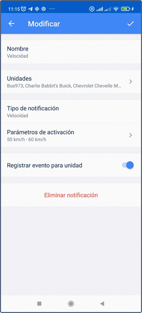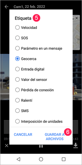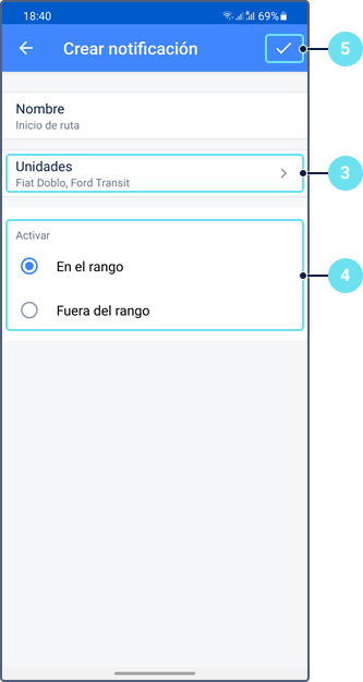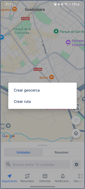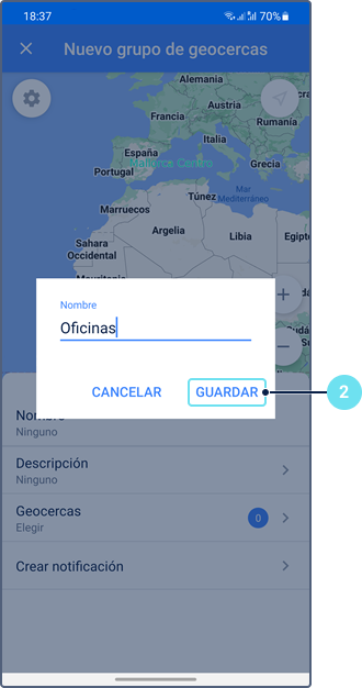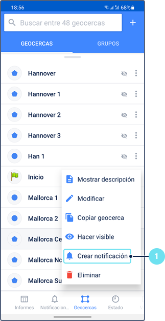 - Crear geocerca (consulte la sección Creación de geocercas)