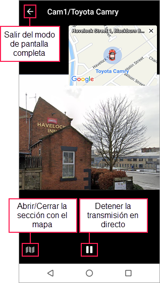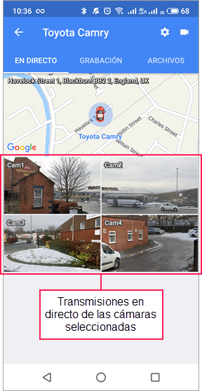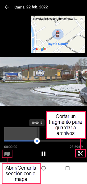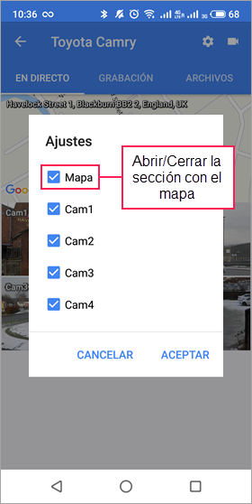 El mapa está disponible en las pestañas Seguimiento, Recorridos, Geocercas y Vídeo. El proceso de uso y configuración del mapa es prácticamente el mismo para todas estas pestañas, excepto para la pestaña Video. No puede interactuar con el mapa ni acceder a su configuración desde la pestaña Video.