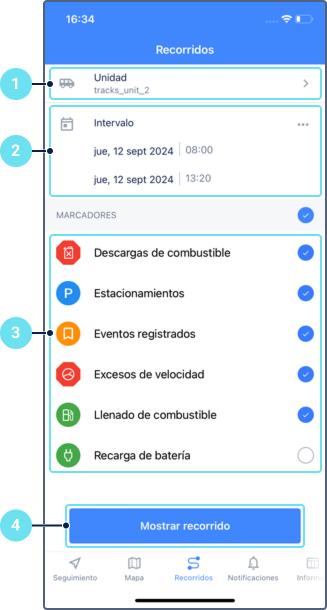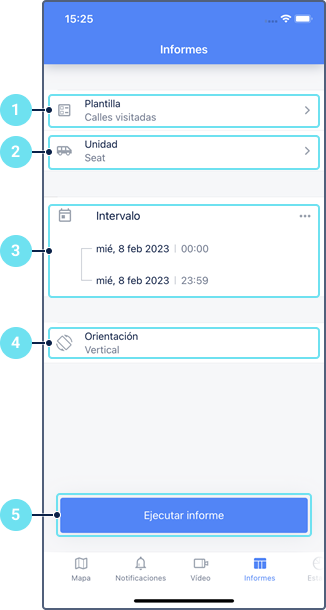 | Unidad | Solicitar informes y mensajes | Acceder al historial, recorridos e informes de la unidad. |