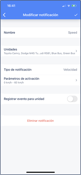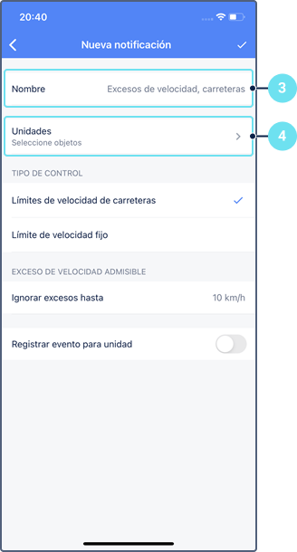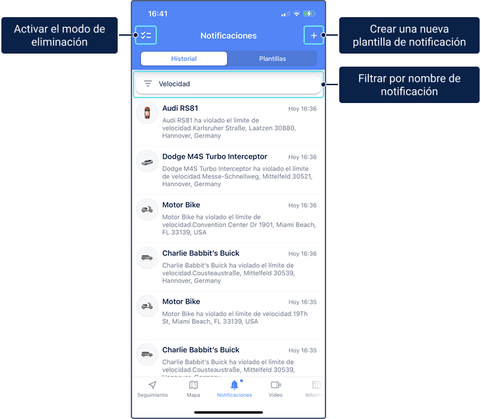 | Geocercas como direcciones | Visualización de la información sobre la ubicación de la unidad en geocercas en vez de la dirección. |