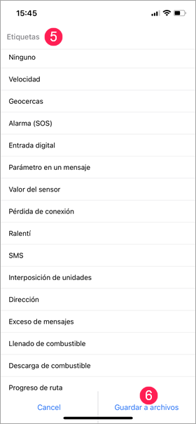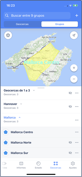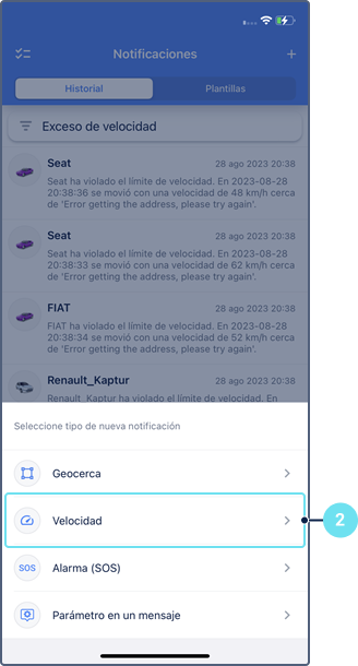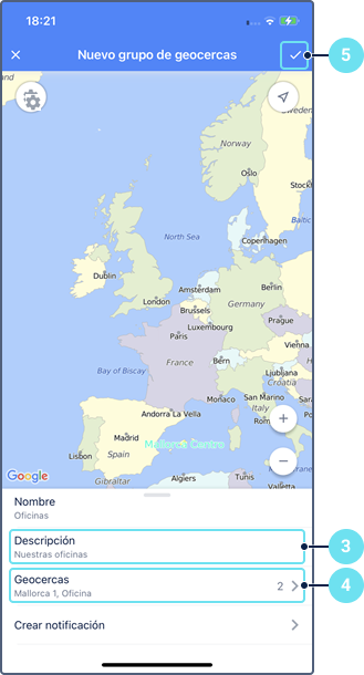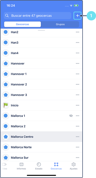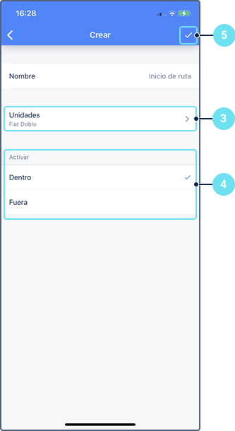 - Crear geocerca (consulte la sección Creación de geocercas)