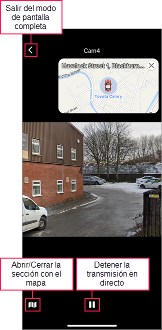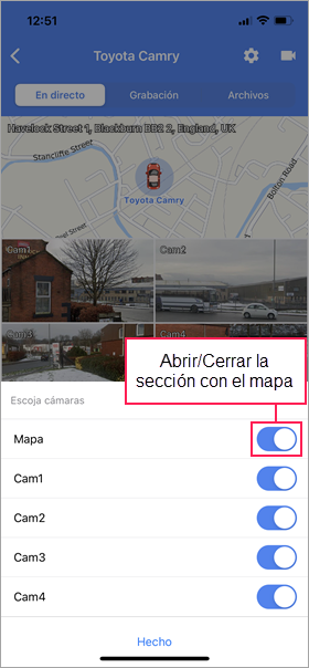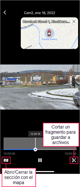 El mapa está disponible en las pestañas Seguimiento, Recorridos, Geocercas y Vídeo. El proceso de uso y configuración del mapa es prácticamente el mismo para todas estas pestañas, excepto para la pestaña Video. No puede interactuar con el mapa ni acceder a su configuración desde la pestaña Video.